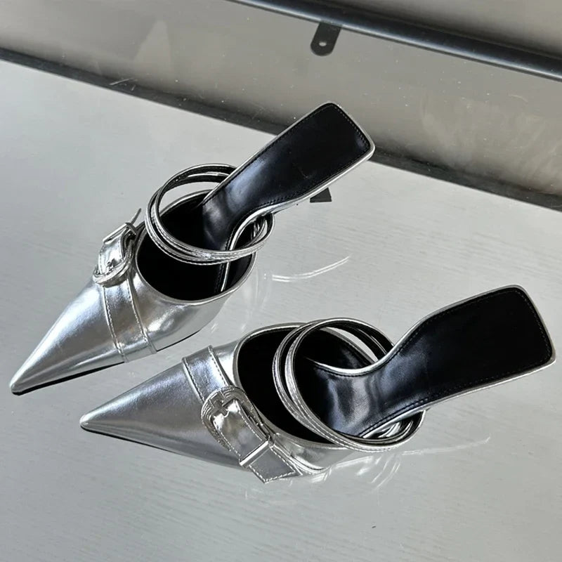 Spring Fashion Buckle Strap Design Style Thins Ladies Pointed Toe Shal Shoes Mules Sandals Low Heel Pumps