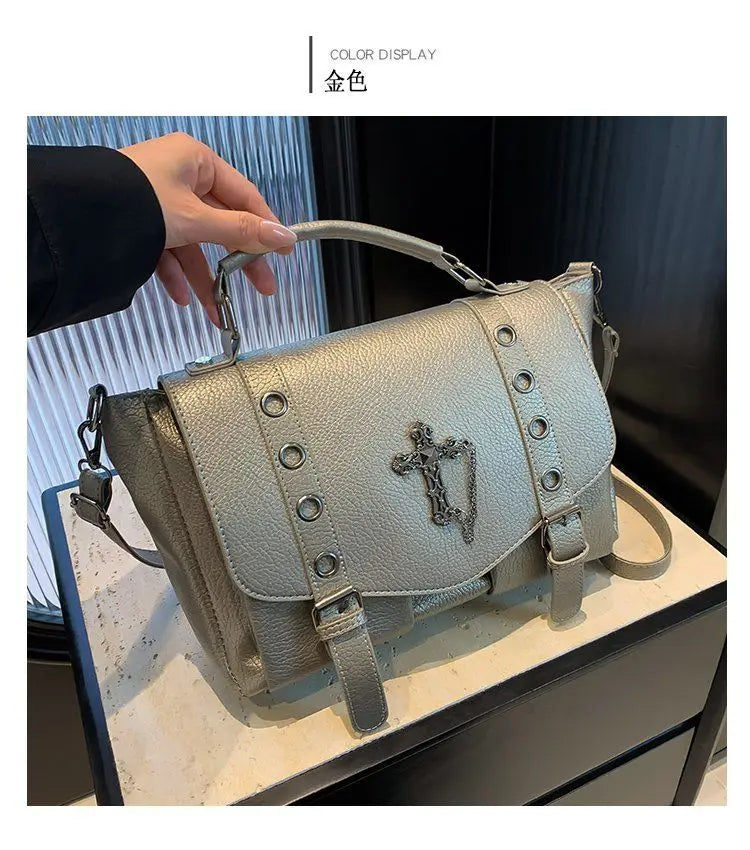 Retro Cross Black Messenger Gothic Dark Leather Casual Y2K Crossbody Shoulder Bag