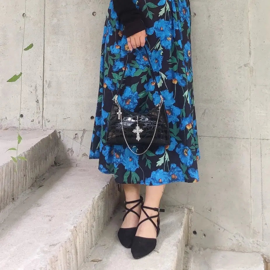Punk Gothic Y2k High Street Cross Chains Crocodile Pattern Green Underarm Bag