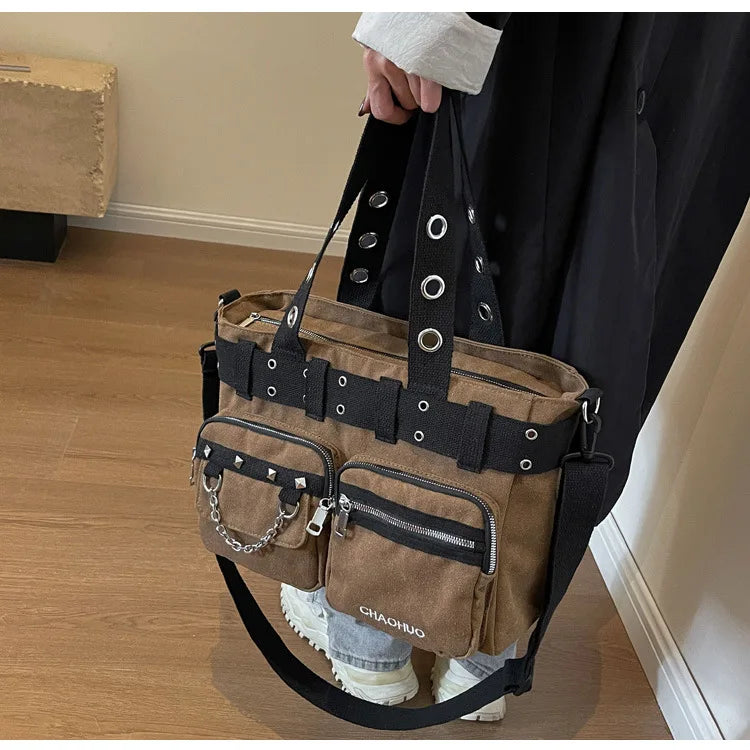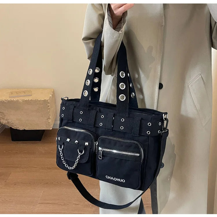 Gothic Punk Rock Black PU Leather Hollow Out Pentagram Dark Cosplay Bag