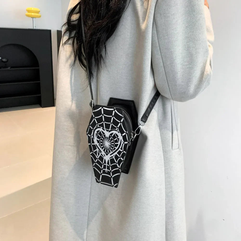 Gothic Coffin Small Spider Web PU Leather Halloween Designer Bag