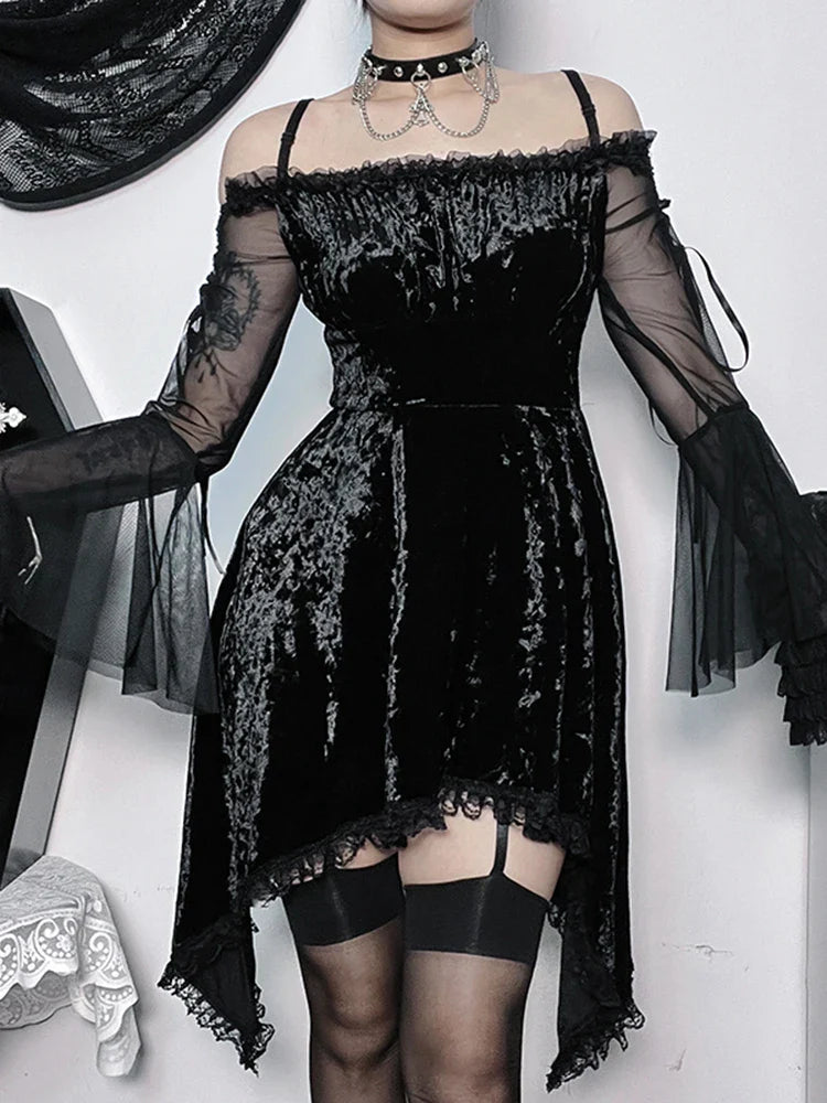 Irregular Flare Sleeve Gothic Steampunk Lace Off Shoulder Renaissance Party Cosplay Lolita Dress