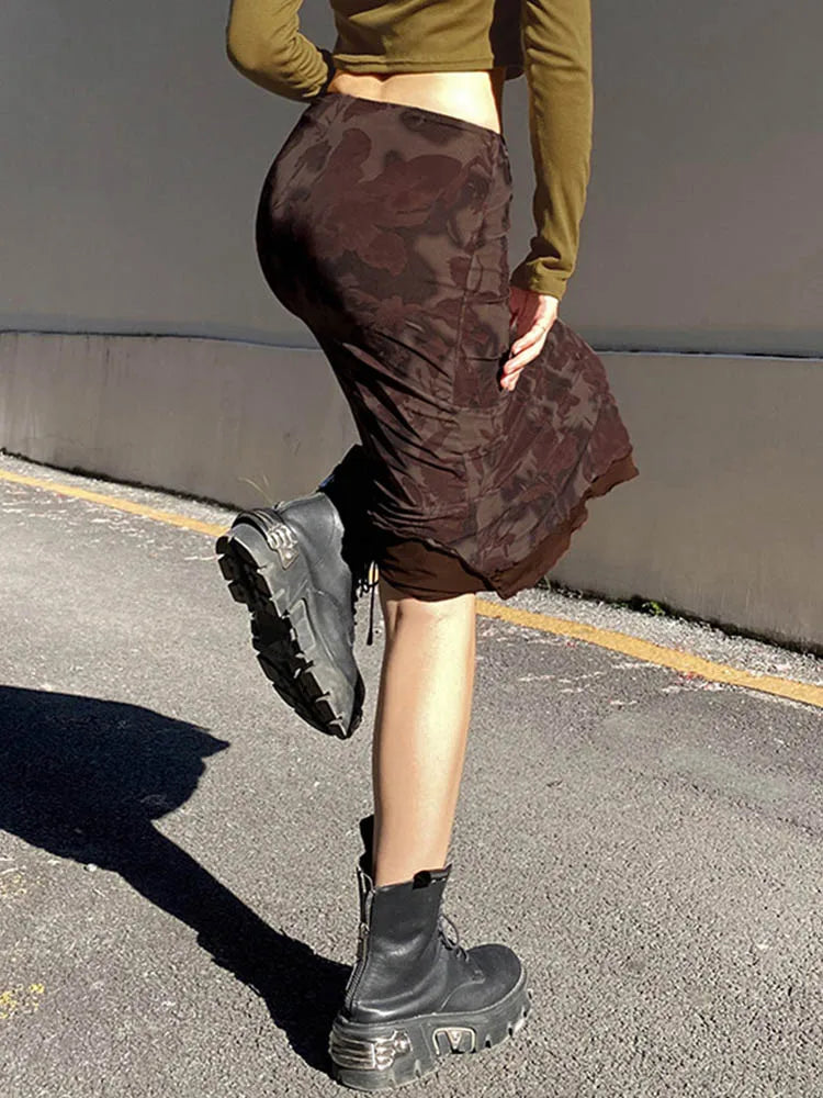 Harajuku Vintage Gothic Grunge Aesthetic Summer Floral Print Skirt