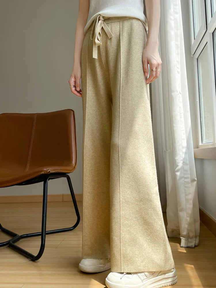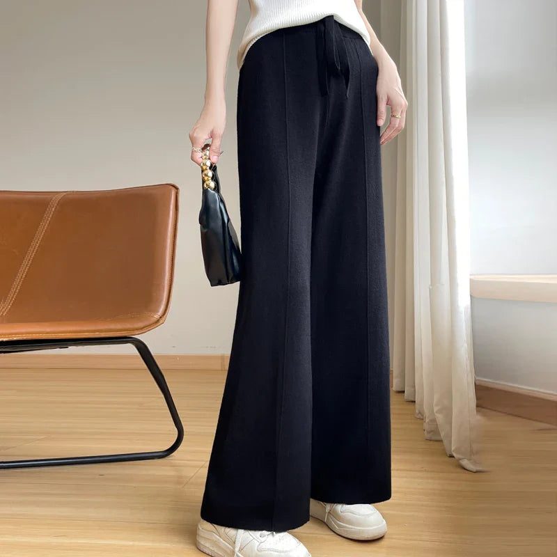 Wide Fashion Leisure Loose High Waist Elastic Solid Knitting Autumn New Pants