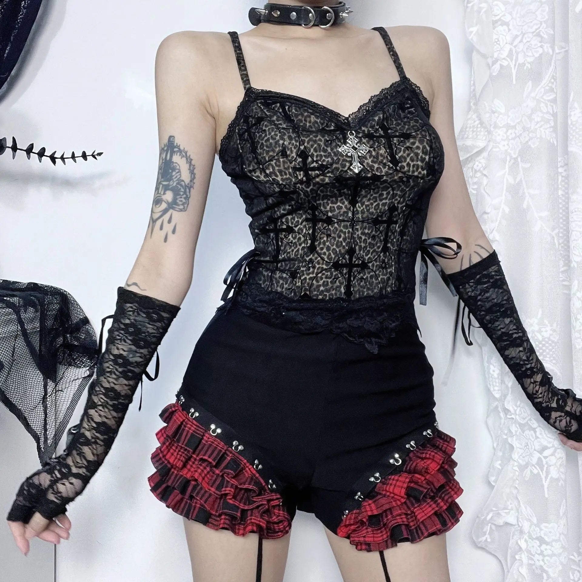 New Arrival Gothic Style Street Spicy Girl Versatile Plush Leopard Print Composite Strap Crop Top