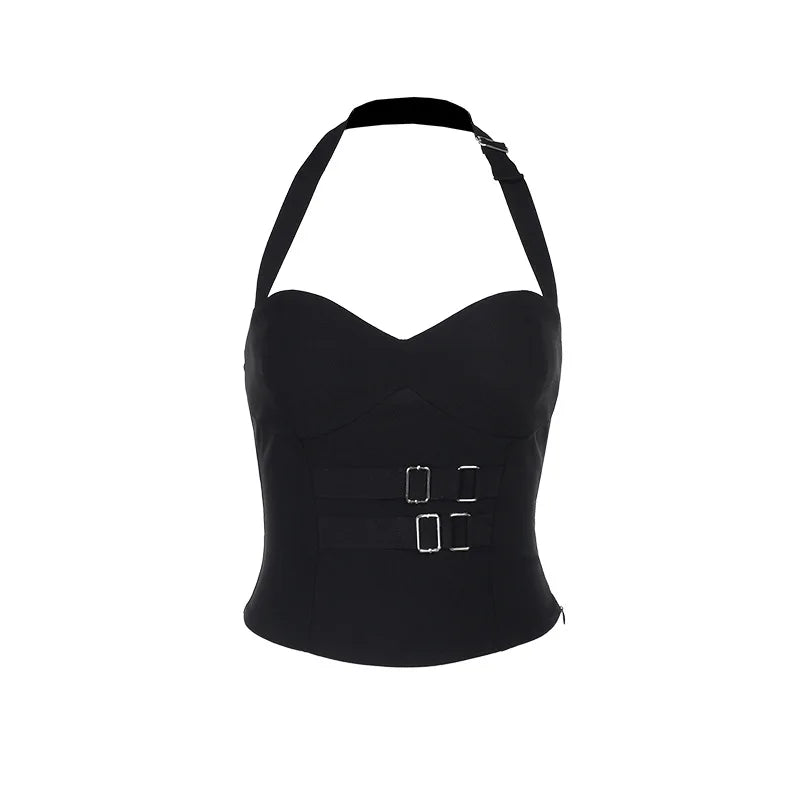New Arrival Landmine Plaid Patchwork Spicy Girl Halter Vest Crop Top
