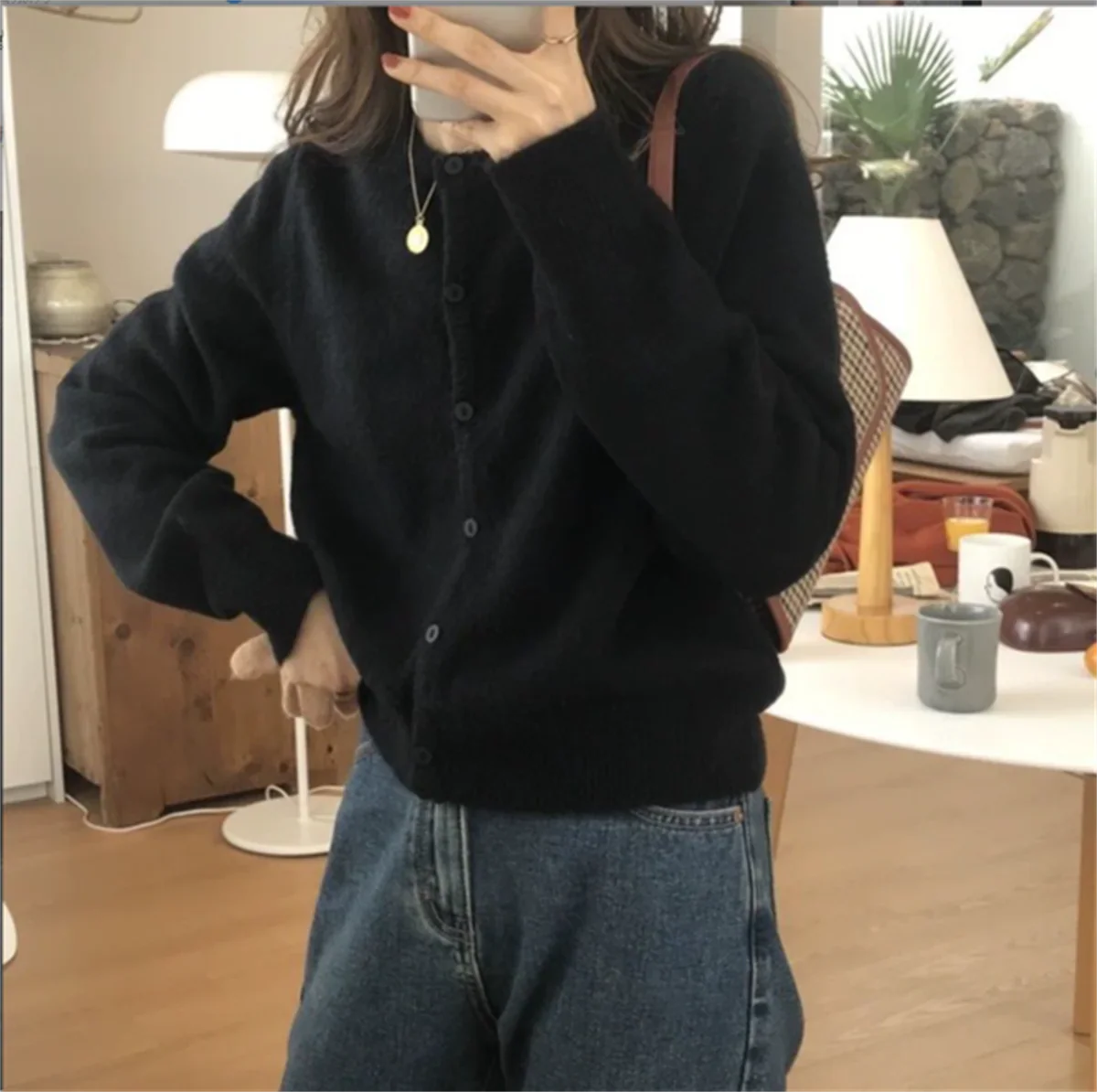 Solid Knit Single Breasted Long Sleeve Loose Autumn Spring Casual Elegant Cardigan