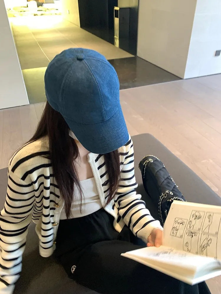 Fashion White Black Striped Knitted Female Winter Short Long Sleeve Cardigan