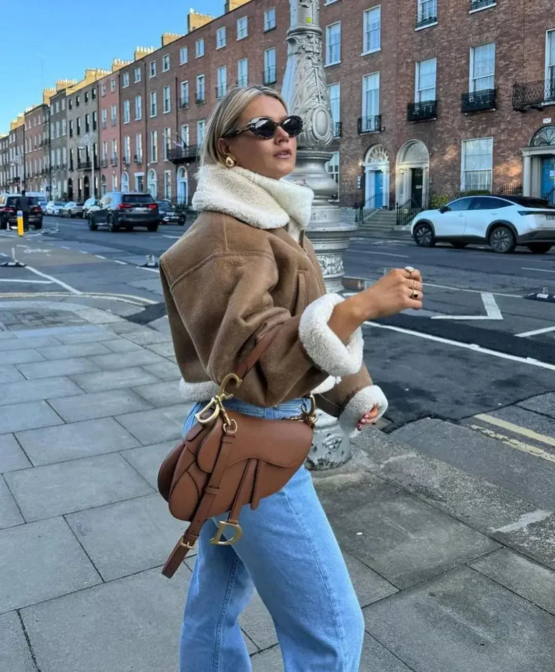 Autumn Winter Vintage Faux Cropped Thick Warm Lapel Fleece Long Coat