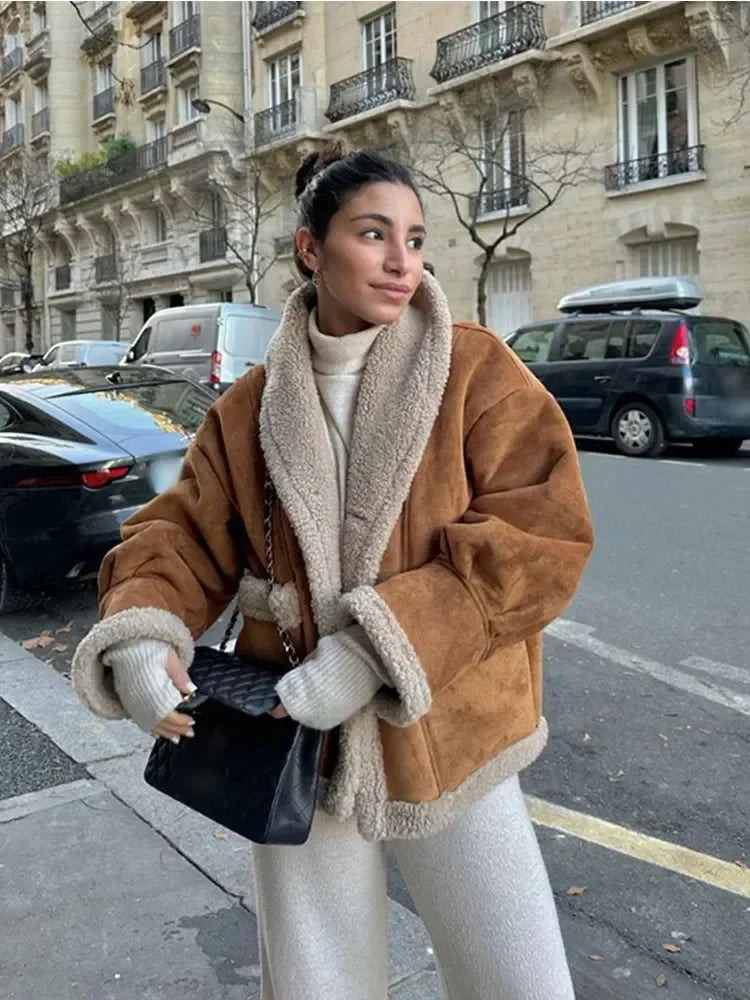 New Chic Lamb Wool Thick Autumn Winter Fashion Lapel Buttons Warm Coat
