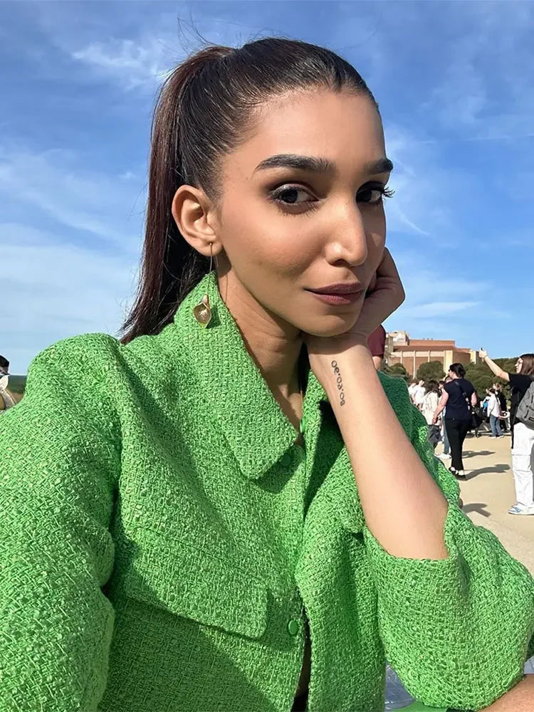 Chic Fake Tweed Cropped Long Female Autumn Short Coat