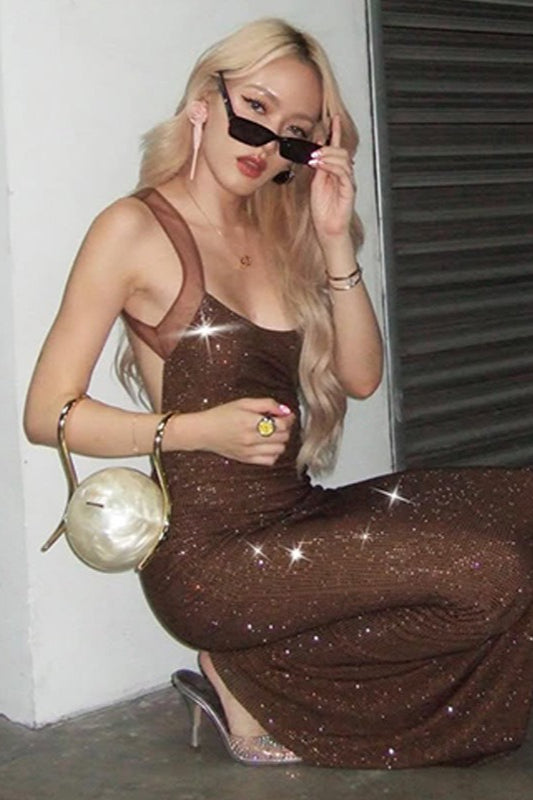 Sheer Panel Low-Back Party Dress