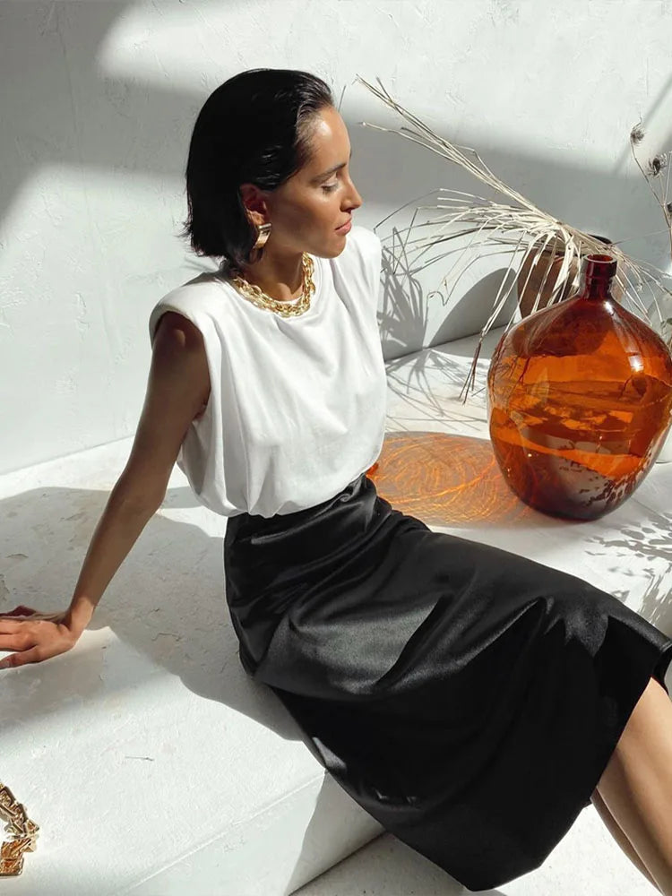 DressBetty - Elegant Solid Purple Silk High Waist Skirt