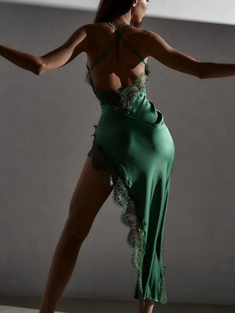 Lace Party Club Backless Stain Black Wholesale Resale Midi Dress