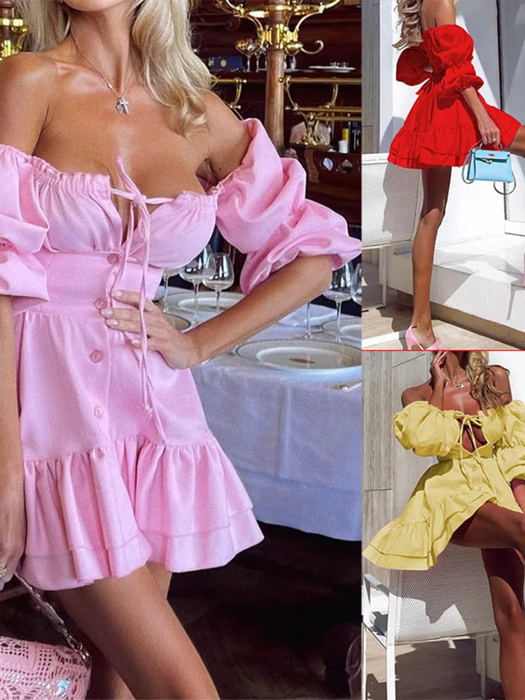 Fresh Sweet Fashionable Slim Flower Print Round Neck Midi Dresses