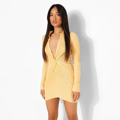 Solid Pleated Splicing Low Cut Elegant Casual Midi Dresses