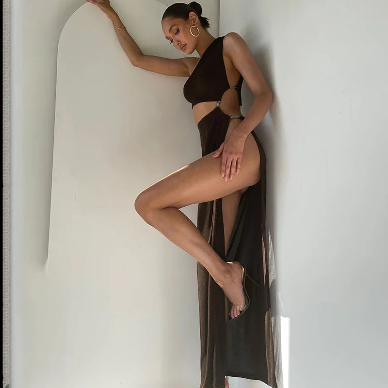 Hollow Oblique Sexy Commuter One-shoulder Elegant Casual Midi Dresses
