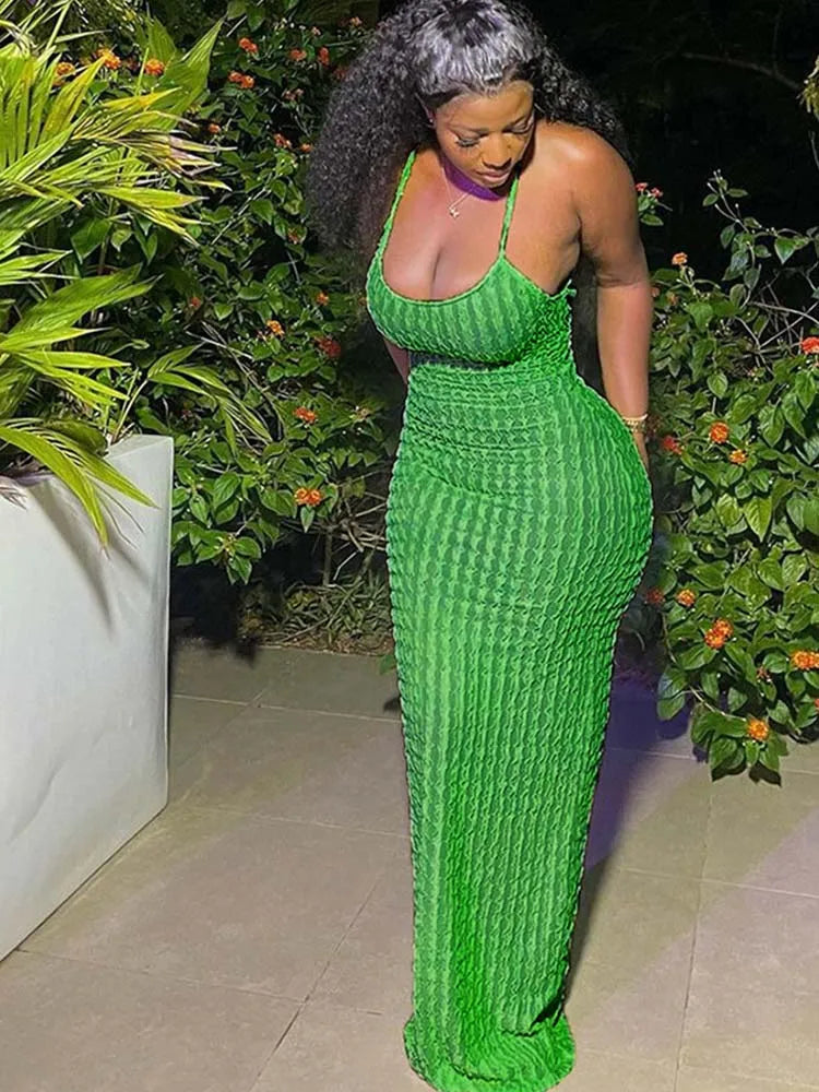 Solid Ruched Spaghetti Strap Casual Sleeveless Backless Streetwear Midi Dresses