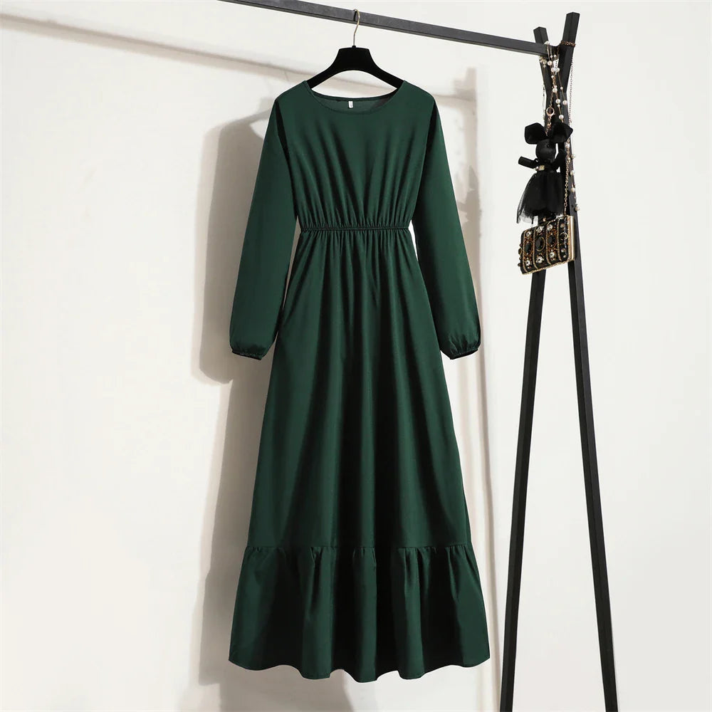Spring Maxi Casual Full Floral Printed O-neck Woman Bohe Party Midi Dresses