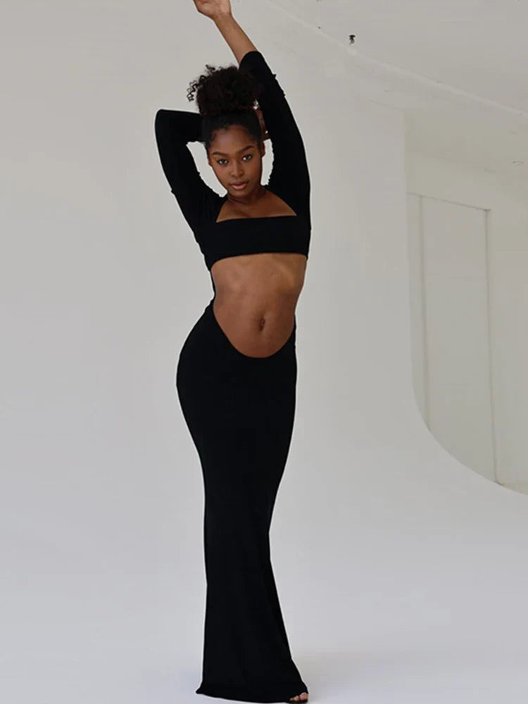 Autumn Solid Color Hollow Out Sexy Elegant Midnight Night Hot Midi Dresses