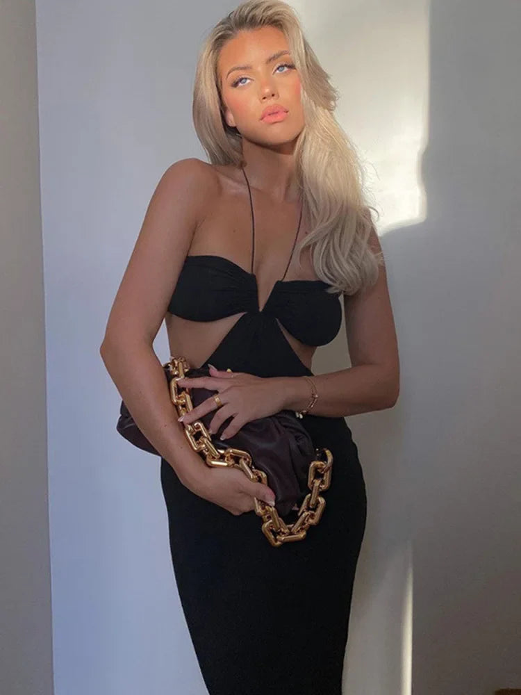 Summer Spaghetti Halter Backless Bandage Sleeveless Midi Dresses