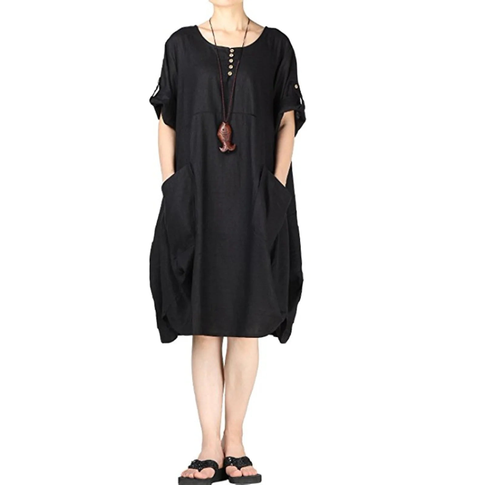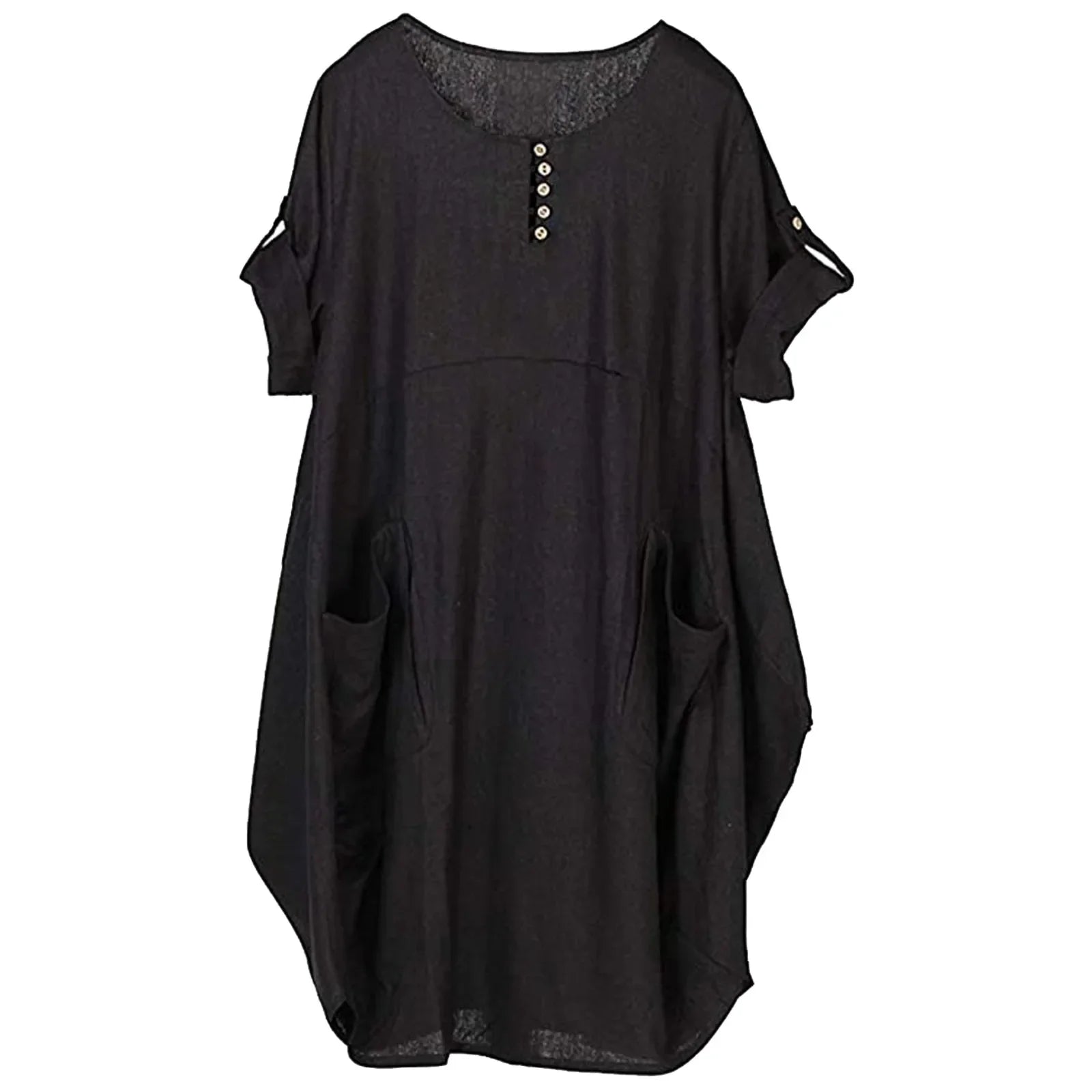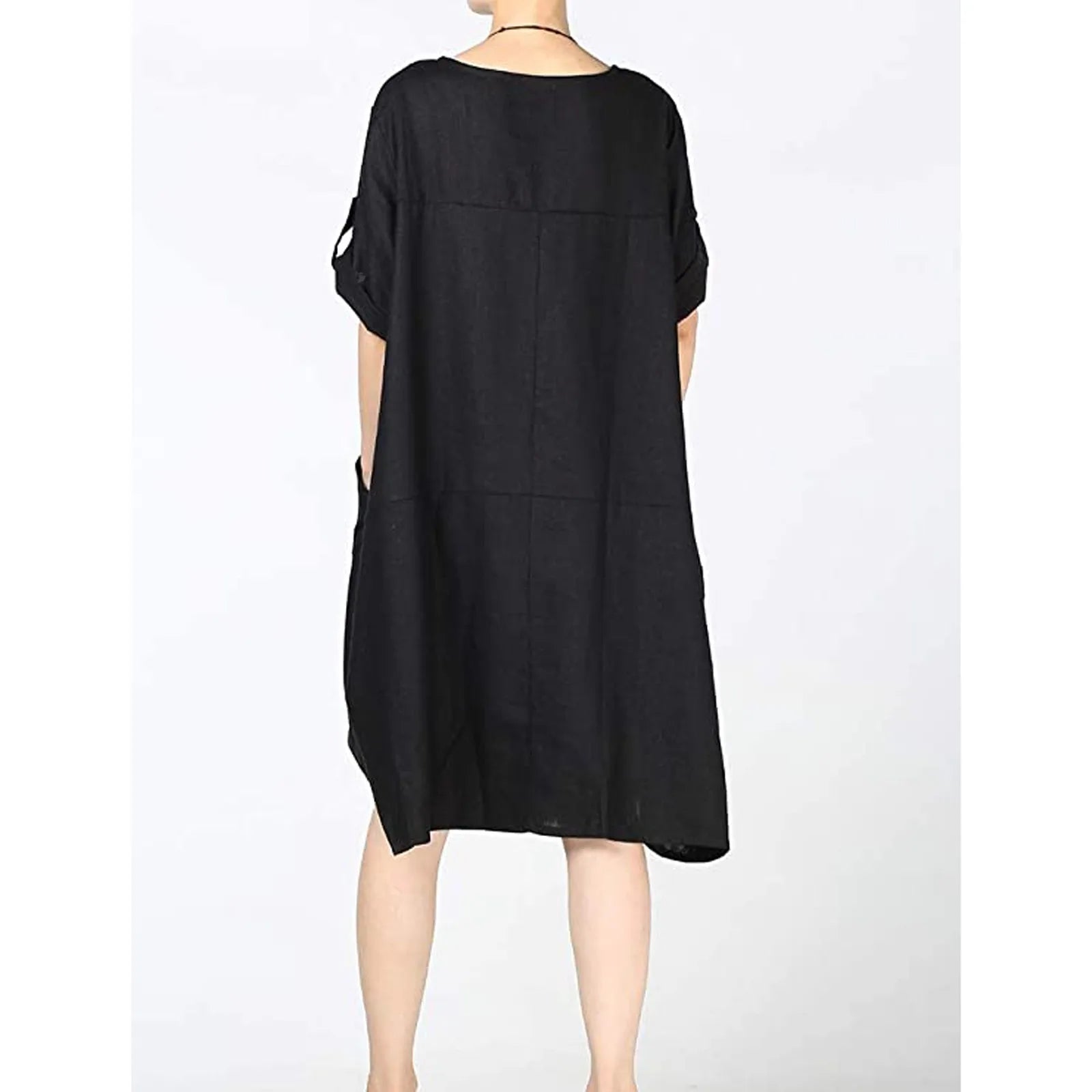 Vintage Women's Tunic Short Round Neck Linen Sleeve Midi T-Shirt Women'S Summer Fashion Vintage Harajuku Loose Dress