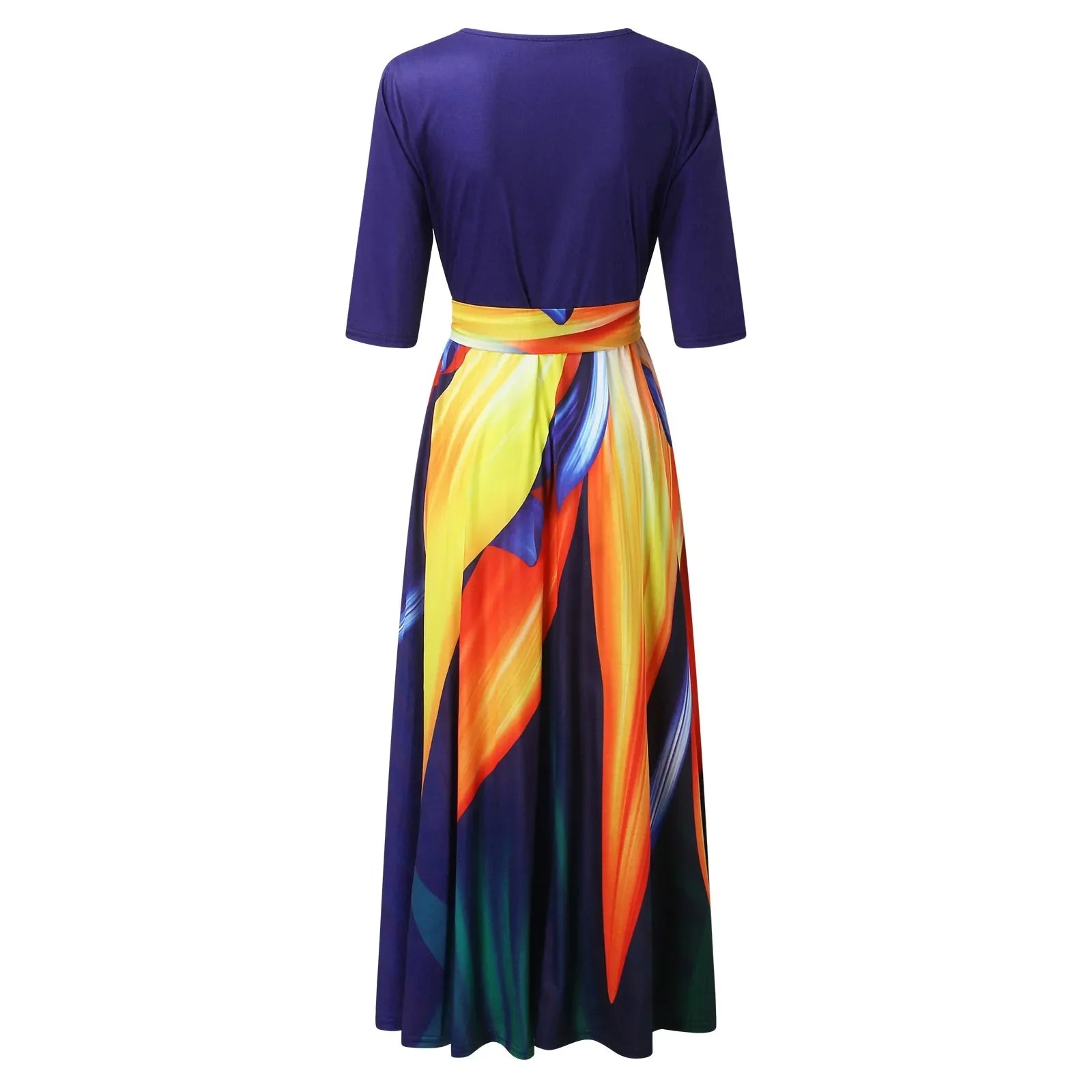 Bohemian Vintage Floral Print Long Sleeve Belt Mini Party Casual Button Up Dress