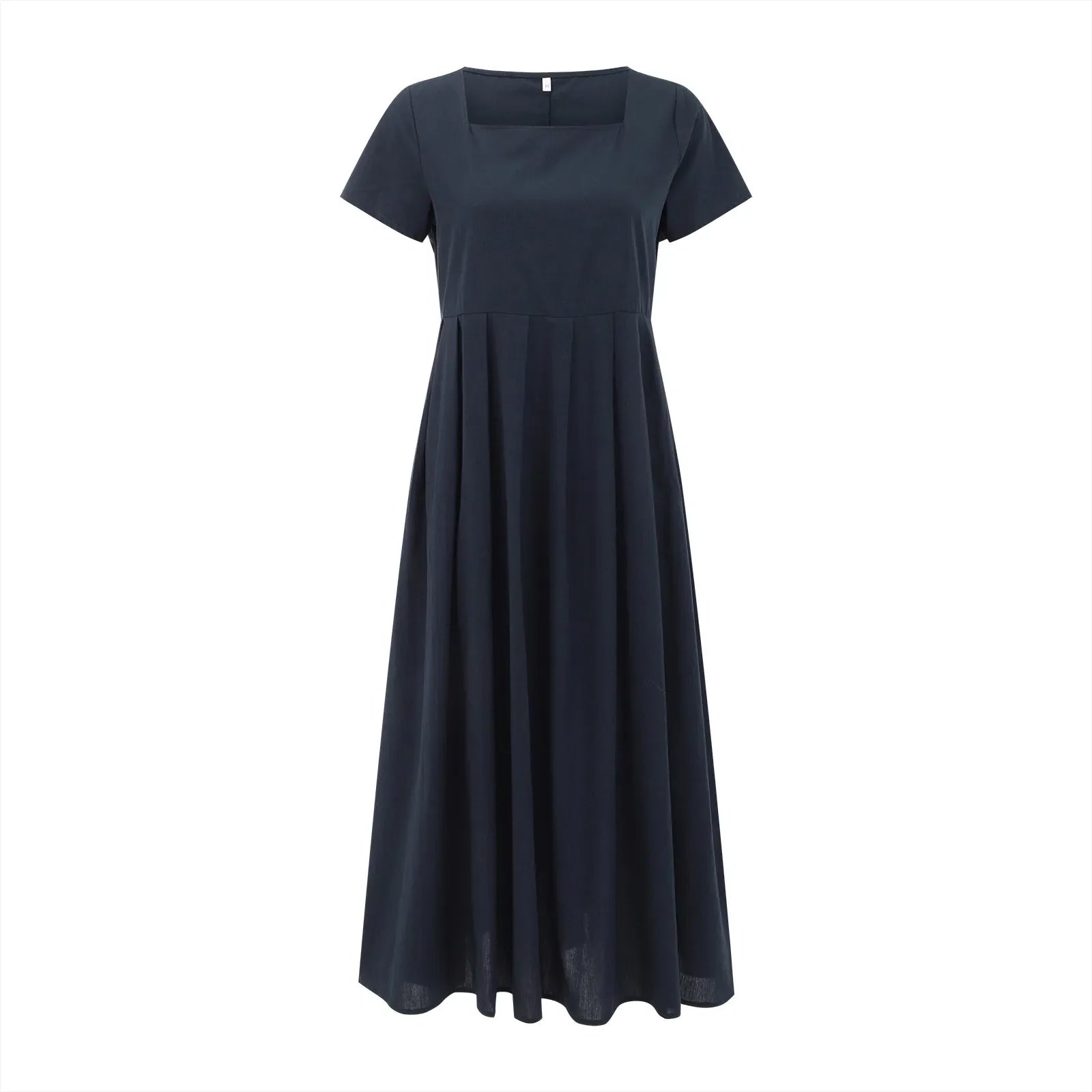 Casual Solid Color Square Collar Cotton Linen Swing Party Midi SunVestidos Dress