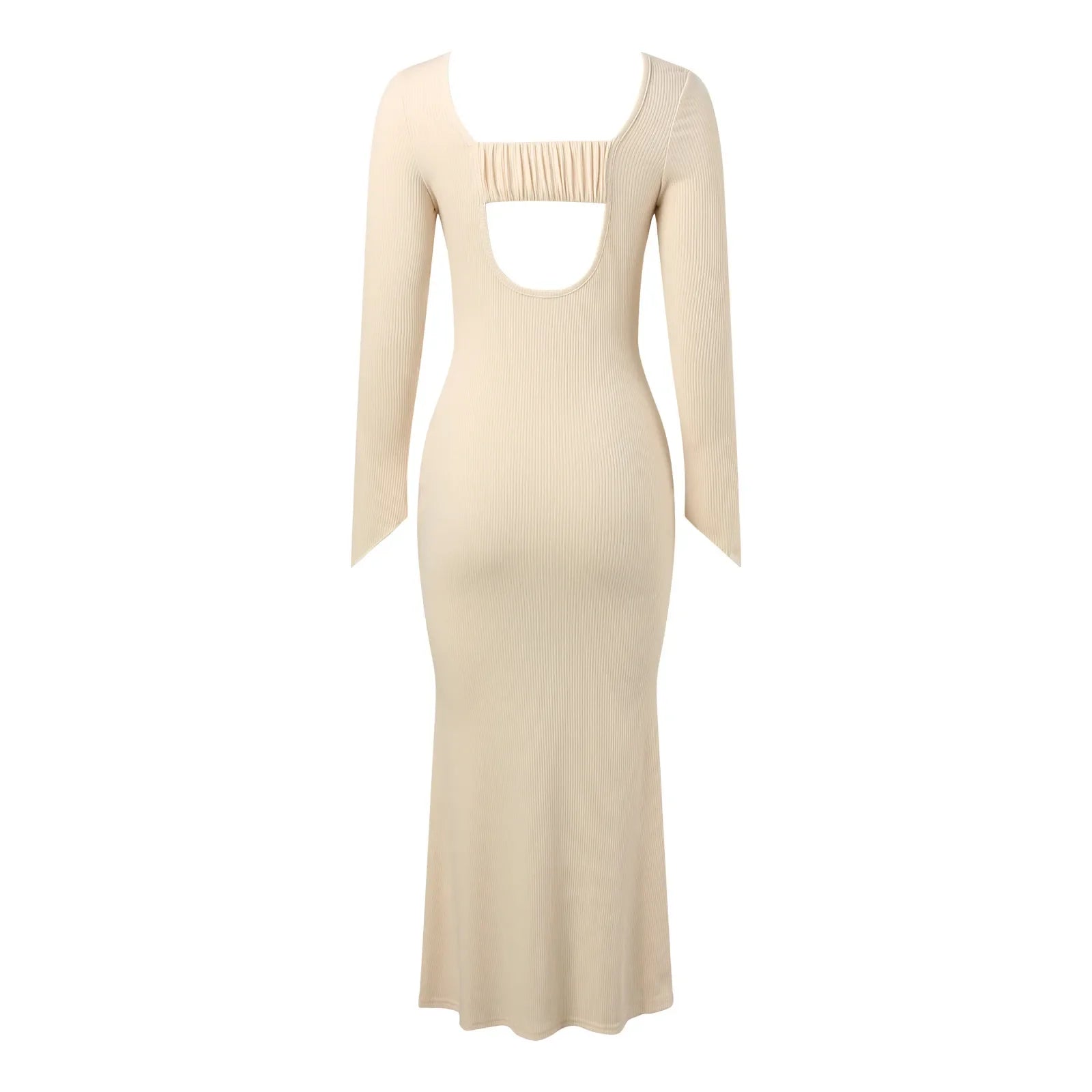 Fashion Knitted Bodycon Solid Color Long Sleeve Tie Backless Slim Fit Casual Vestidos Mujer Dress