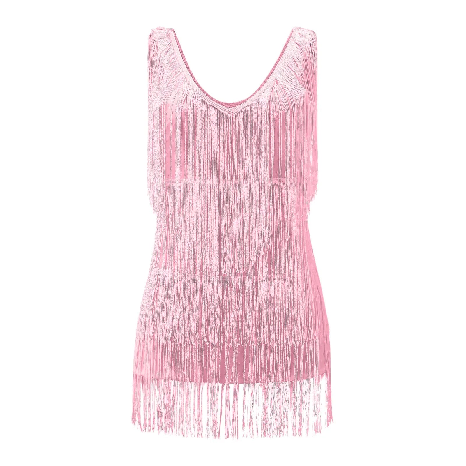 Sexy V-Neck Tassel Mini Elegant Sleeveless Sequin New Ladies Summer Night Club Cami Fringe Dress