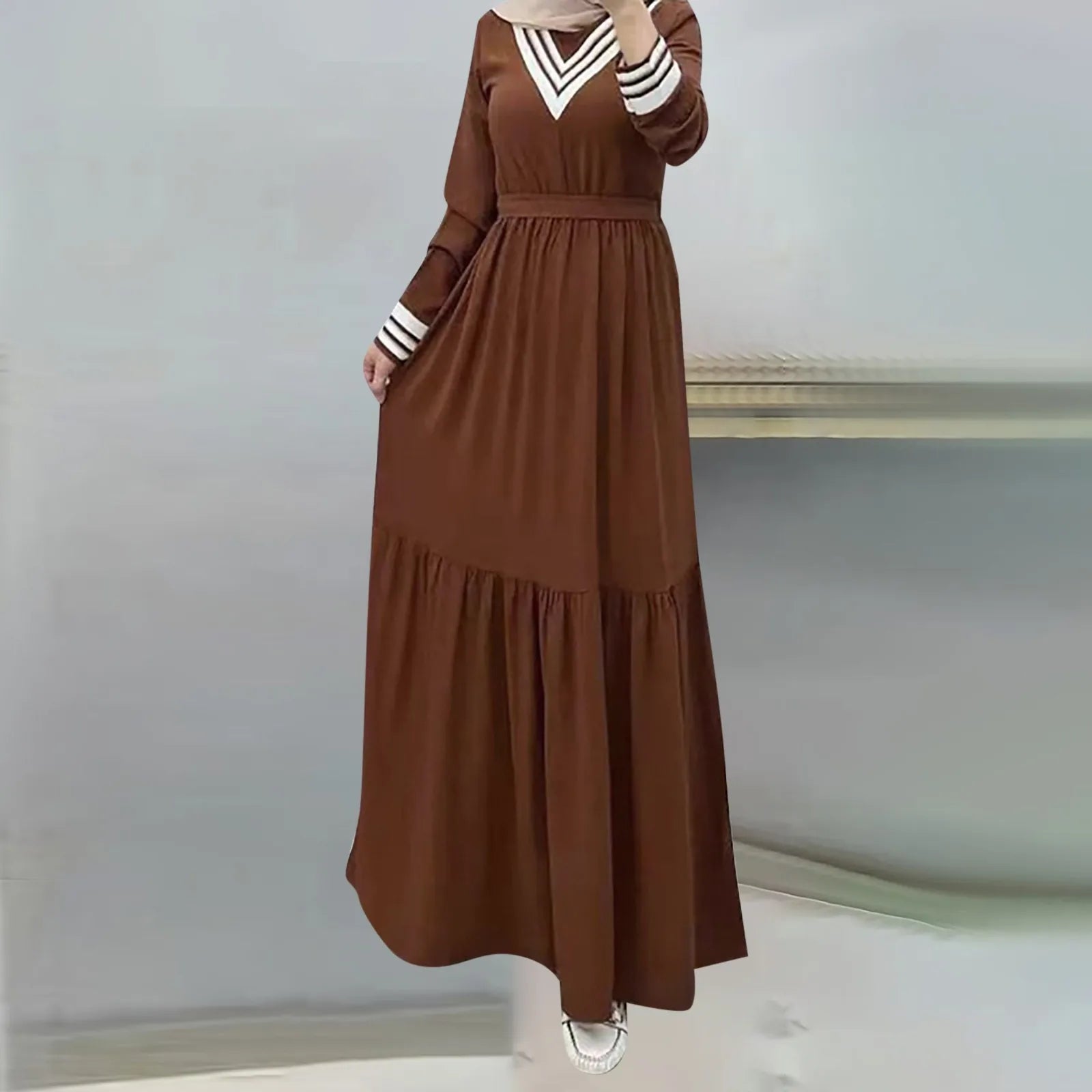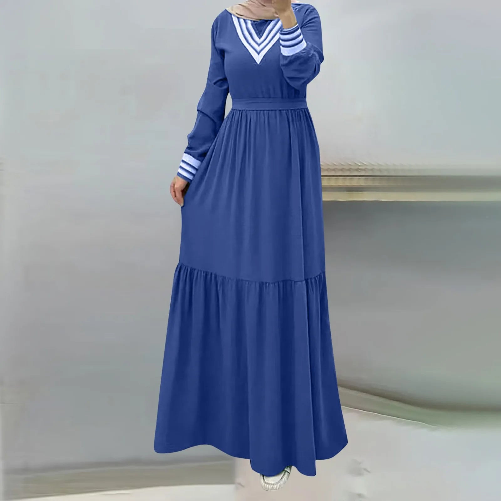 Women's Muslim Abaya Black Dubai Saudi Robe Solid Color Splicing Belt Fashion Loose Kaftan Dress