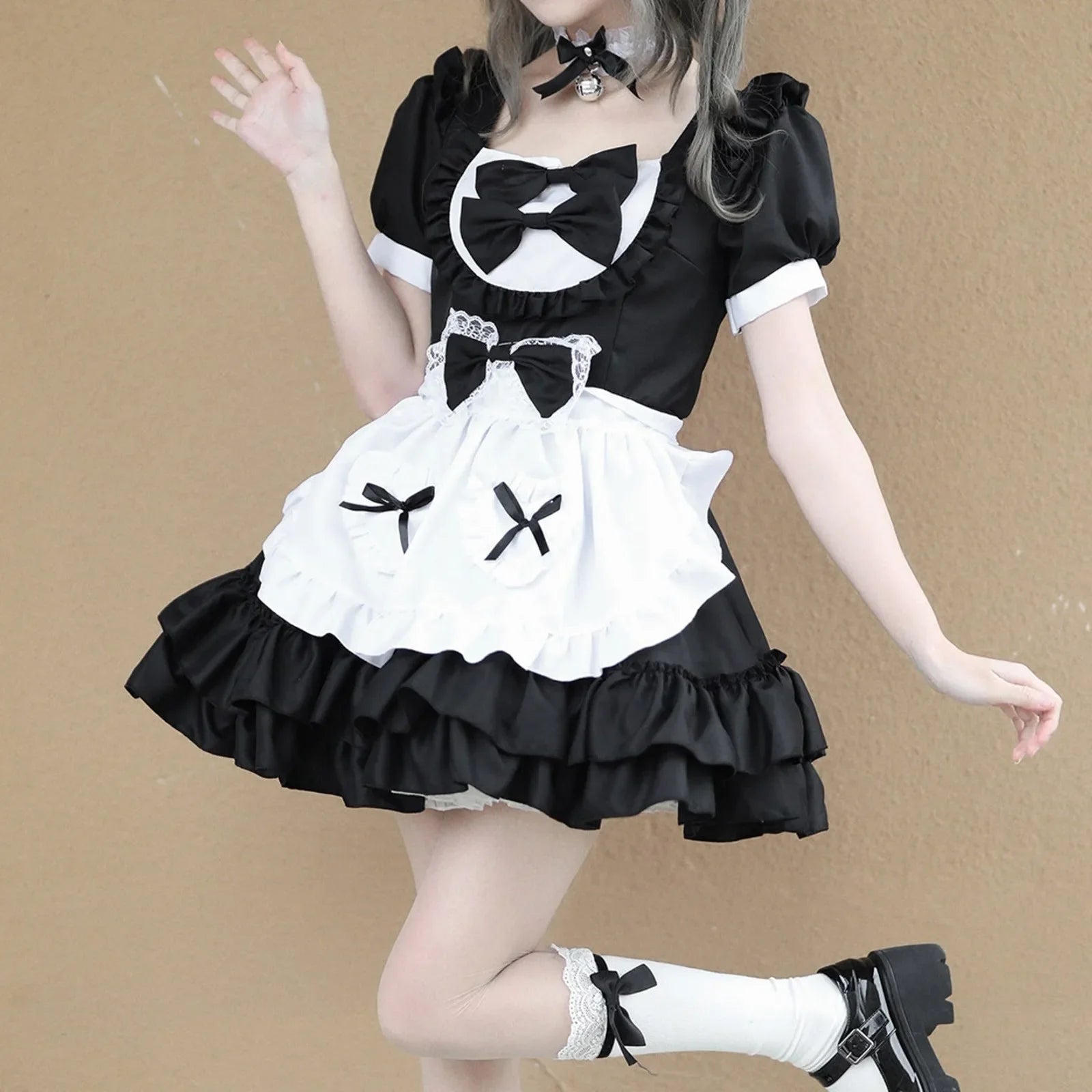 Elegant Cute Kawaii Lolita Maid Uniform Set Japanese Harajuku Y2k Cosplay Women's Dress