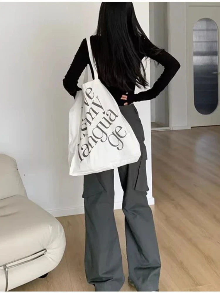 Vintage Grey Cargo Y2K Streetwear Straight High Street Pant
