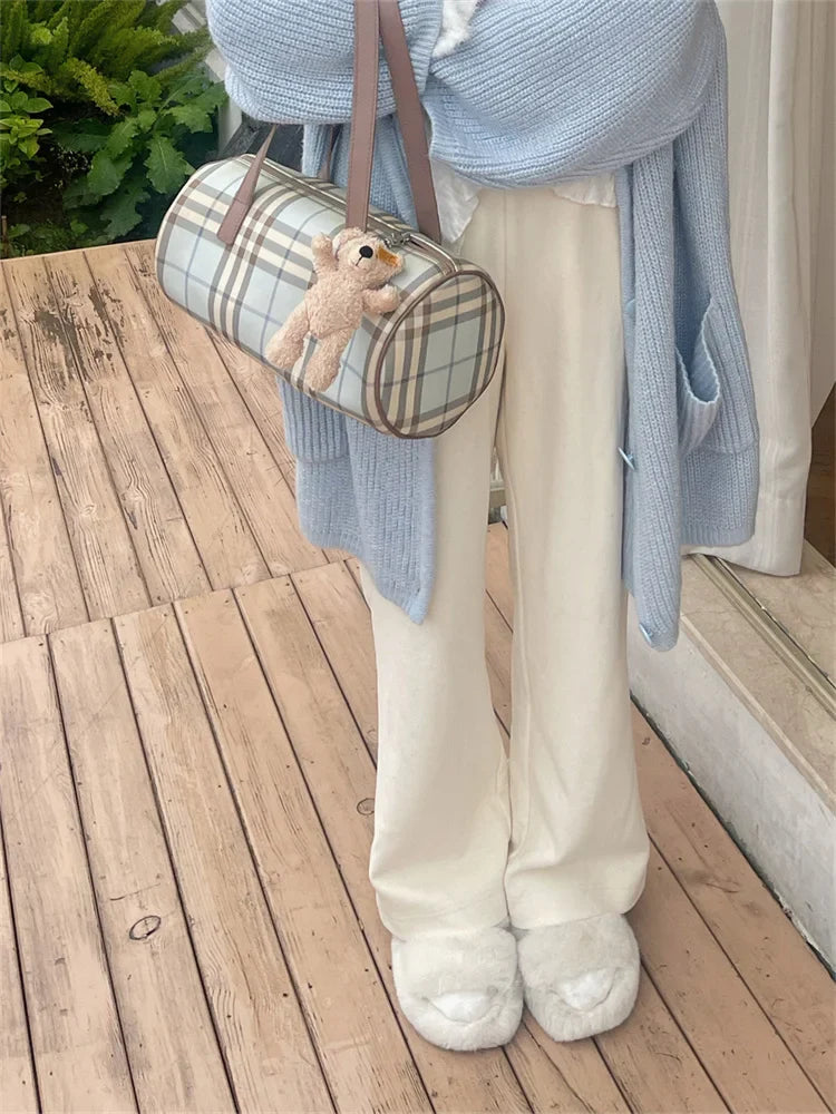 Korean Sweet Cute Pink Lolita Ruffles Beige Girly Elegant Wide Pant