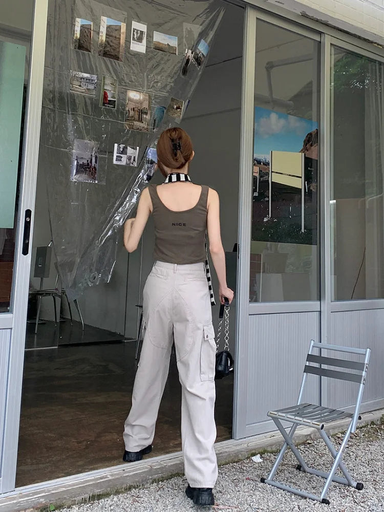 Vintage Y2K Beige Cargo Hip Hop Oversized Baggy American Retro Streetwear Pant