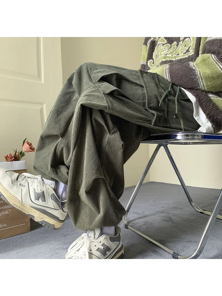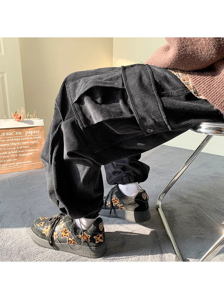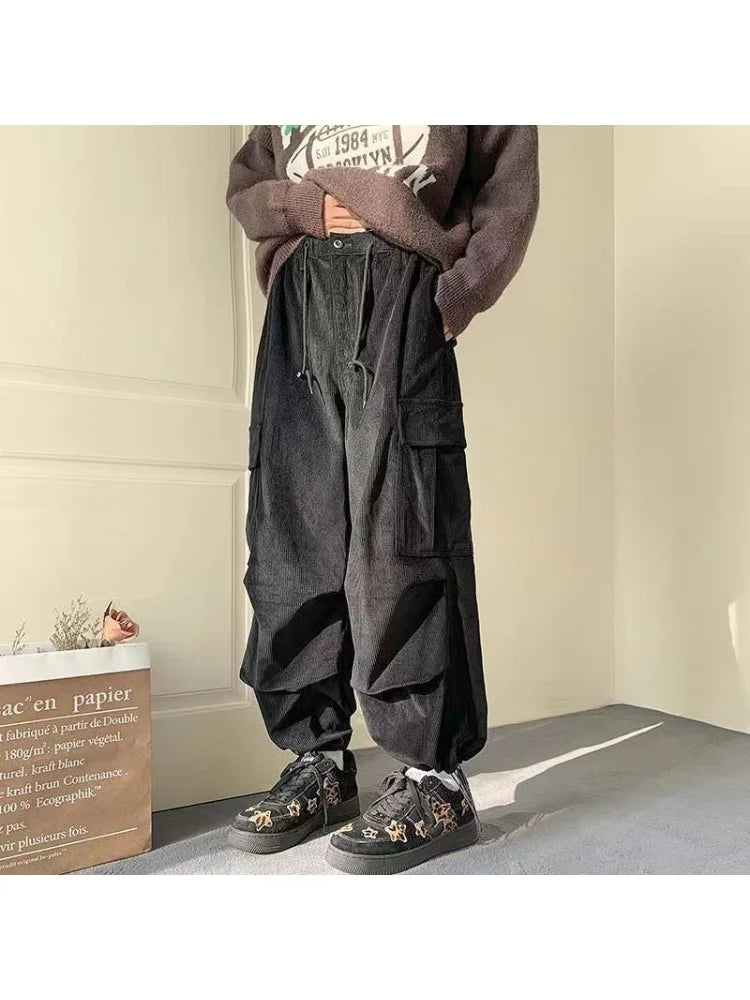 Harajuku Vintage Brown Corduroy Cargo Japanese Style Hip Hop Oversized Baggy Pant