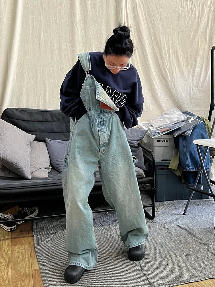 Vintage Kpop Baggy Hippie Denim Overalls Harajuku Korean Streetwear Oversize Cargo Pant