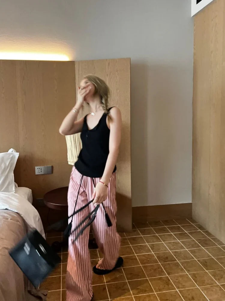 Pink Striped Wide Leg Women Korean Vintage Baggy Sweatpants