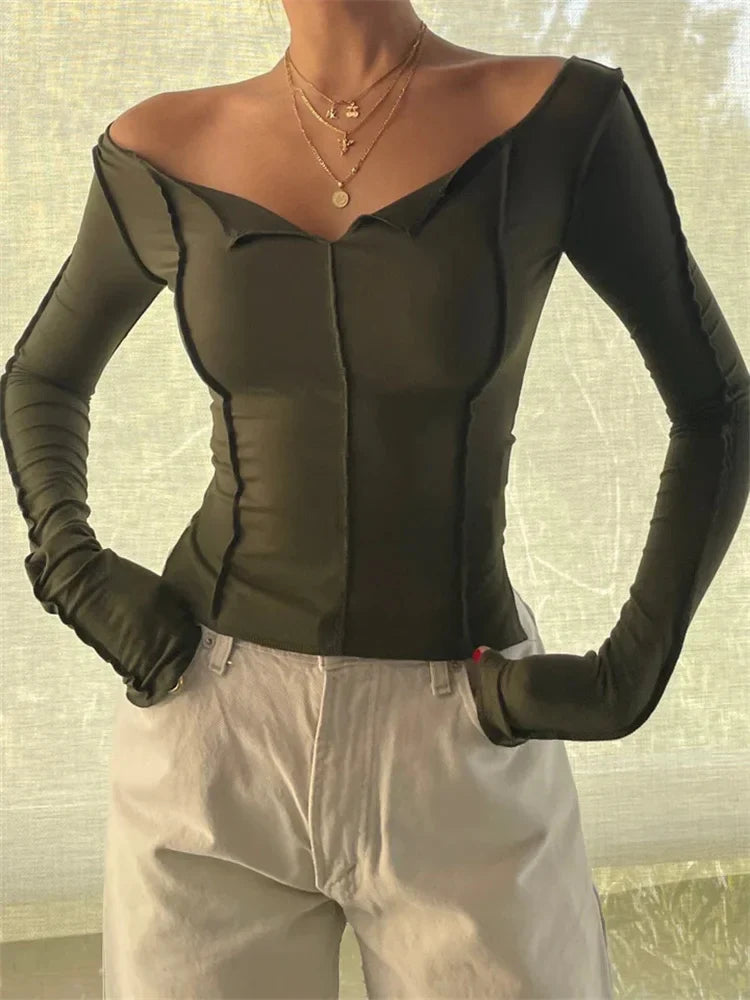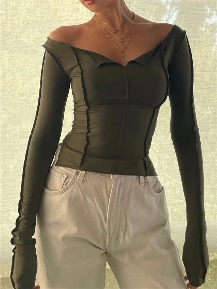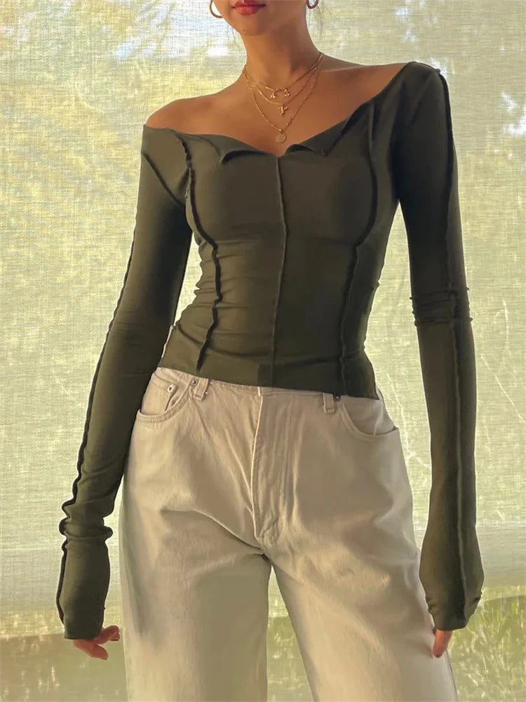 Casual Ruched Long Sleeve Spring Fall Slim Fit Pullovers Female T-shirts