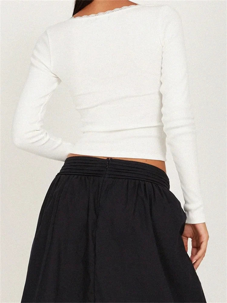 Y2K Lace Knitted Ribbed Long Sleeve Fairy Grunge Slim Fit Harajuku T-shirts