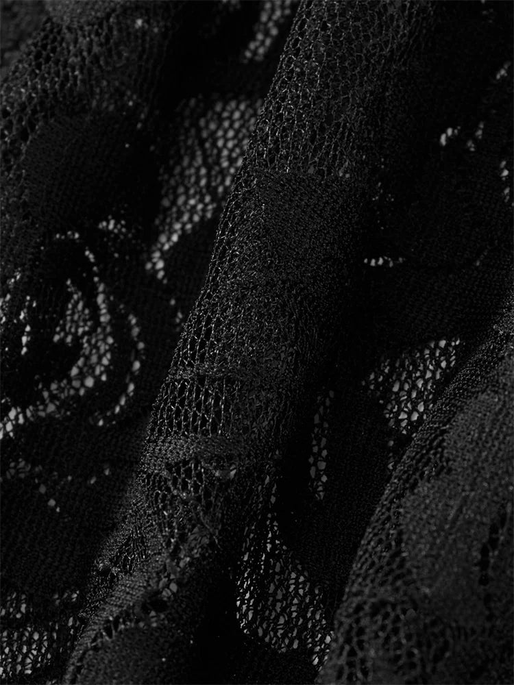 Long Sleeve V-neck See-through Lace Slim Mesh Sheer Cropped Summer Clubwear T-shirts