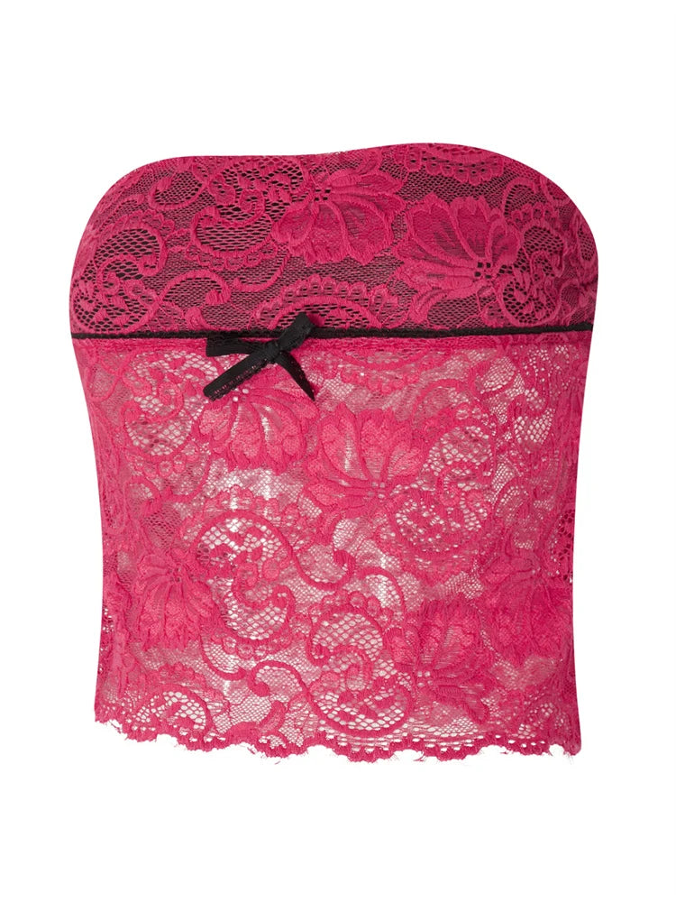 Lace Tube for Women Sexy Strapless Y2K Off Shoulder Aesthetic Cropped Summer Mini Vest Streetwear 2024 New Crop Top