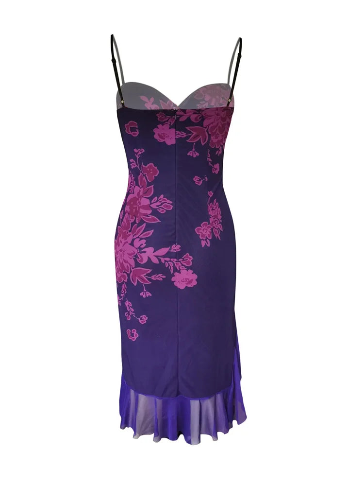 Sleeveless Strap Floral Print Ruffles Irregular Hem Party Midi Dress