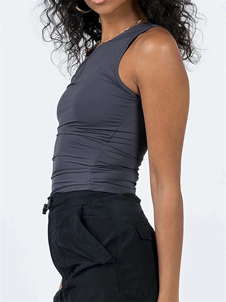Off Shoulder Strap Ruched 2024 Women Sleeveless Solid Slim Fit Irregular Hem Vest Summer Streetwear Crop Top