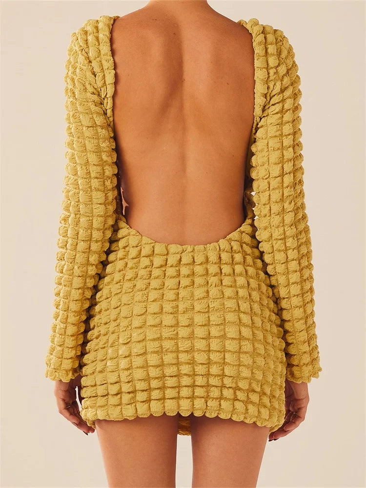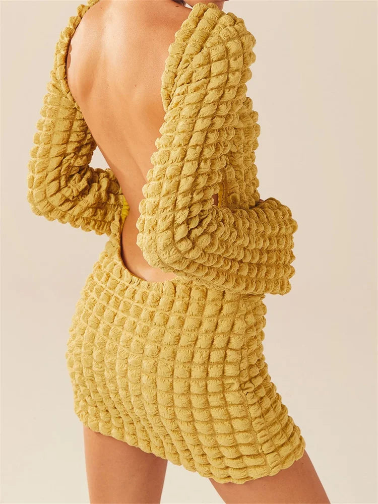 Plaid Ruched Backless Slim Fit Mini Dresses