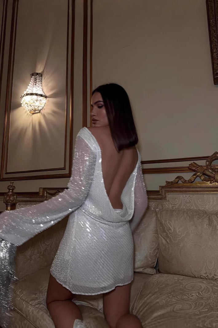 Sexy Back Ruffle Cut Out Hot Girl Sequin Dress